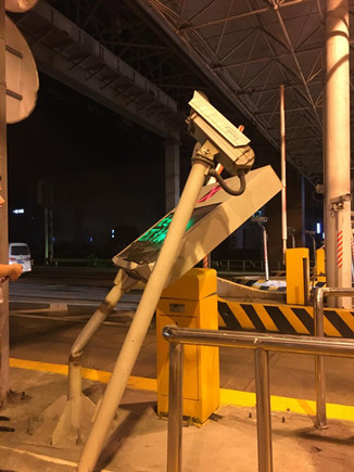 7月5日22點03分,機電設(shè)備維養(yǎng)中心接到臺州收費所當(dāng)班班長小馬電話,稱該所ETC入口綜合顯示屏及抓拍攝像頭被一輛大客車撞彎,事故還導(dǎo)致出口欄桿不能正常工作,影響了出口車輛正常通行。
