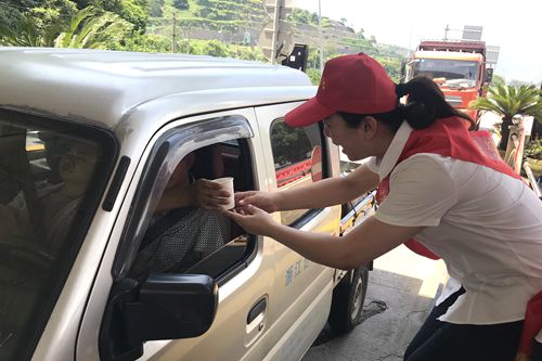 圖為志愿者為過往司機(jī)遞上消暑品 “師傅,辛苦啦!喝杯綠豆湯,解解暑氣吧!” “大熱天的,您可要多注意休息呀,千萬別疲勞駕駛,這是礦泉水和風(fēng)油精,希望能幫您緩解疲勞?!?/span> 活動當(dāng)天,該所在車道安全島內(nèi)搭起臨時(shí)“便民服務(wù)臺”,為司乘人員免費(fèi)提供礦泉水、綠豆湯等解暑佳品。同時(shí)還針對夏季出行容易出現(xiàn)的中暑、暈車現(xiàn)象,備足風(fēng)油精、人丹等解暑降溫藥品。
