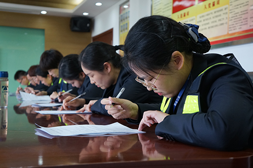 圖為筆試現(xiàn)場(chǎng) 比賽分筆試和現(xiàn)場(chǎng)問(wèn)答兩部分,內(nèi)容涉及收費(fèi)政策、業(yè)務(wù)知識(shí)、特情處理、內(nèi)控管理制度。筆試試題分成6份,參考人員隨機(jī)選題,各班組分批閉卷測(cè)試,最后取班組平均分進(jìn)行排名。現(xiàn)場(chǎng)問(wèn)答由必答題、搶答題、場(chǎng)外題等多個(gè)部分組成,采用累積計(jì)分、搶錯(cuò)答錯(cuò)扣分方式進(jìn)行。各組以班組為單位每班派出3名選手,分成四組,其他班組人員則參加場(chǎng)外搶答。 “開(kāi)具高速公路電子發(fā)票可下載“票根”APP或登錄票根網(wǎng)的網(wǎng)址是?” “車道移動(dòng)支付掃碼設(shè)備連接異常,導(dǎo)致無(wú)法支付,需要做哪些?”