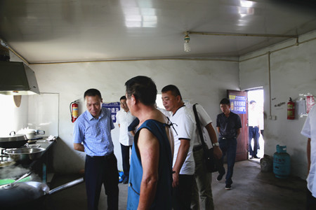 圖為集團副董事長、總經理張建平檢查內環(huán)北路(江口段)民工食堂